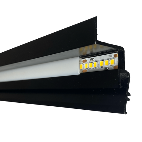 Alteza Contour-Pro Led  чёрный парящий профиль под вставку – предназначен для контурной подсветки натяжного потолка со светорассеивающей вставкой. Ширина контура – 16,5 мм. Применяются светодиодной ленты 8-10 мм мощностью до 14 ватт. Соединение стыковочными гвоздями.