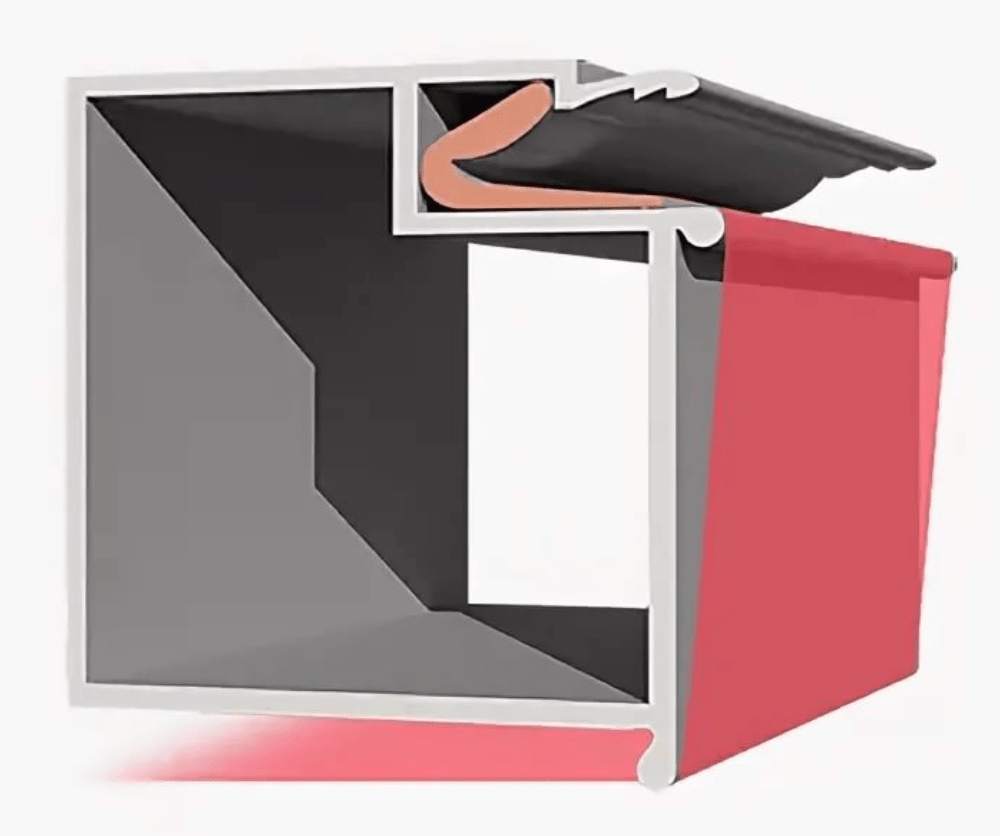 - Паз в профиле, в который заправляется полотно, закрывается декоративной вставкой, что придает аккуратный внешний вид.