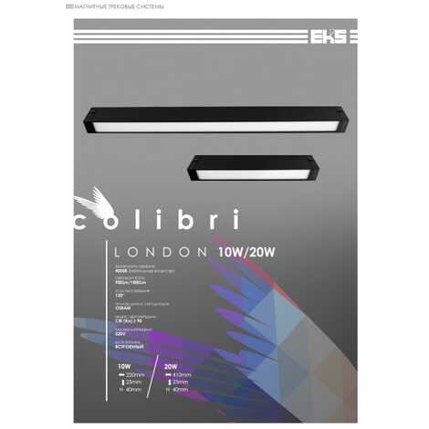 Трековый светильник COLIBRI LONDON 20 Вт, 4000K, 1800ЛМ (черный) от компании EKS для магнитных трековых систем S25.