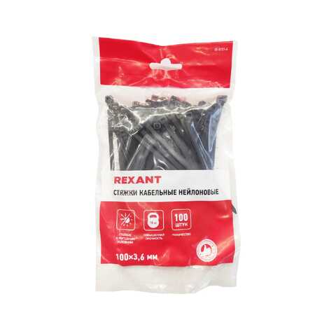 Стяжка кабельная 100x3,6мм (черная) REXANT