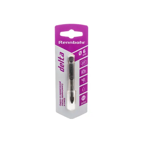 Сверло по керамике Delta 6 мм RENNBOHR широко применяется для сверления дверей в кафеле, керамической плитке и стекле.