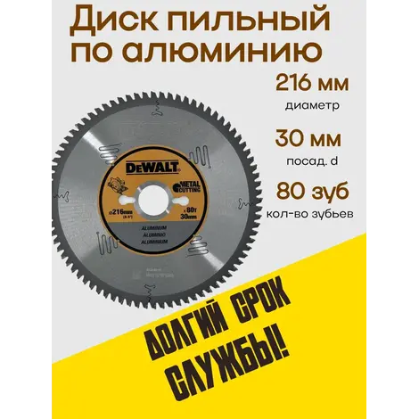 Диск пильный по алюминию DEWALT 216x80x30 имеет тип пропила чистый, что позволяет получить качественный результат при работе с материалом. Он также совместим с другими инструментами, такими как пилы торцовочные и дисковые.