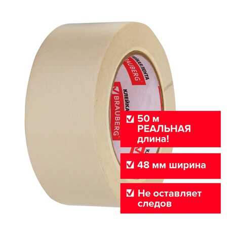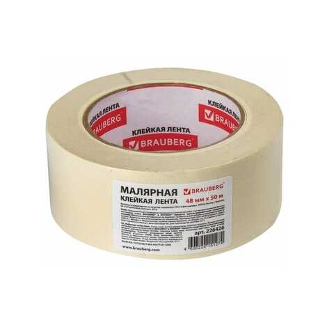 Лента малярная Brauberg Белая 125мкм. 48х50м. Крепированная бумага на основе каучука. Проф.