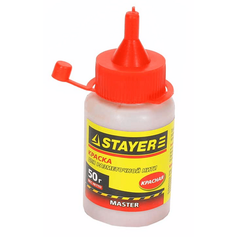 Широкое применение в ремонтных, отделочных, строительных работах находит разметочный шнур. С его помощью очень просто и легко «отбить» идеально ровную горизонтальную, диагональную, вертикальную линию. Достаточно натянуть шнур между двумя ранее поставленными отметками, слегка отвести и отпустить. В месте его соприкосновения с поверхностью останется ярко выраженный след (линия). Однако при условии интенсивного применения, красящая способность инструмента постепенно утрачивается. Получаемая разметка теряет былую четкость, становится блеклой и слабозаметной. В этом случае необходимо заправить разметочную нить, используя меловой порошок (50 г) красный STAYER .Он представляет собой специальный красящий состав, изготовленный на меловой основе.