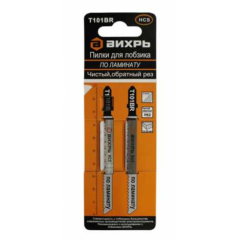 Пилки для лобзика Т101ВR по ламинату,чистый,обратный рез 100х75мм (2шт) Вихрь 73/10/5/4