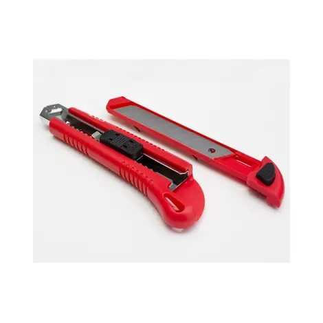 Строительный нож 18 мм би-металл используется в самых разных работах, где требуется раскроить заготовки из бумаги, картона или гипсокартона. Нож оснащается выдвижным лезвием шириной 18 мм с надежным фиксатором положения. Таким ножом вы сможете быстро отрезать часть материала, придать ему нужную форму. По мере износа лезвия легко меняются, запасные комплекты можно купить вместе с ножом.