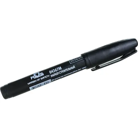 Строительный маркер черный 04367М имеет конусообразный наконечник. Диаметр сердечника составляет 4.5 мм, а диаметр острой части - 2 мм.