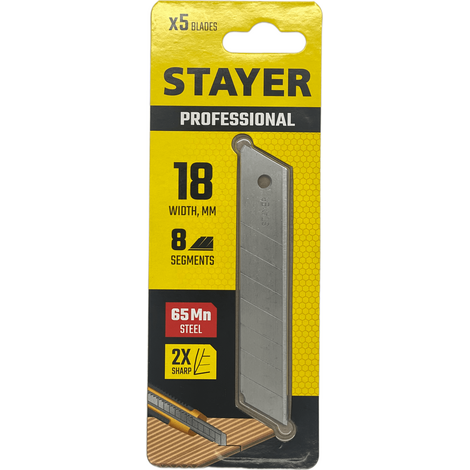 Лезвия STAYER PROFESSIONAL 18 мм сегментированные, 5 шт, 8 сегментов