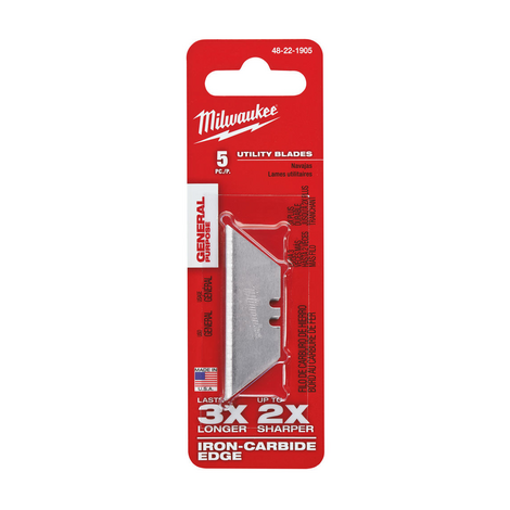Сменные трапециевидные лезвия для ножей MILWAUKEE. Лезвия для ножа общего назначения. Ширина лезвия 19 мм, общая длина 62 мм, высота 19 мм. Поставляются в пластиковом диспенсере по 5 или 50 штук.