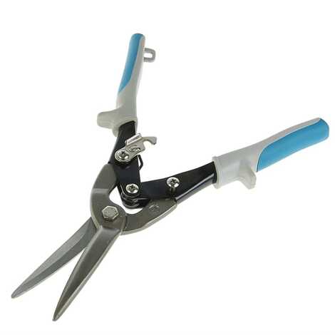 Ножницы по металлу используются как в быту, так и в профессиональном строительстве для проведения ремонтных, монтажных и слесарных работ. Они позволяют нарезать листовой материал с ограниченной толщиной. На оси с рукояткой находится рабочая часть, благодаря которой достигается прямой чистый рез. Изделие произведено из ударопрочной и износостойкой углеродистой стали. Режущие кромки дополнительно закалены и устойчивы к деформации, повреждениям. Упоры у рукоятки препятствуют полному смыканию лезвий.