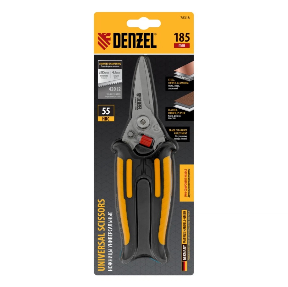 Ножницы универсальные 185мм Дензел 78318