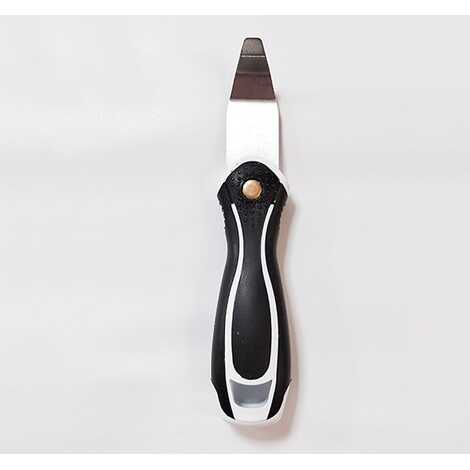 Лопатка имеет изогнутую заострённую форму и ширину "носика" всего 0,8 см, эргономично лежит в руке. Используется в узких труднодоступных местах, например, за газовыми или водопроводными трубами, проходящими близко к стене, применяется для заправки полотна в острых углах ниш и коробов. Изгиб металлической части спроектирован так, чтобы удобно было заправить потолок не повредив обои и потолок.