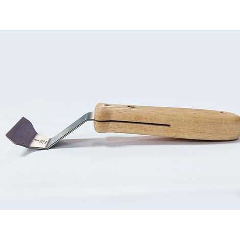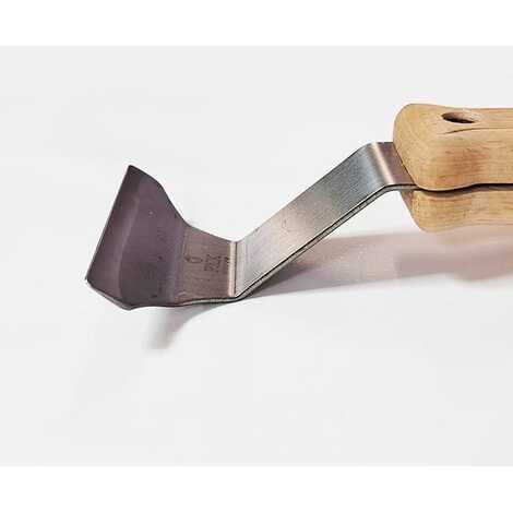 Инструмент для установки пленки ПВХ. Подходит для теневых и парящих профилей. Для удобства работы с гарпуном, рабочая часть имеет выборку. Лопатка имеет трапециевидную форму. Два гиба металлической части спроектированы так, чтобы удобно было заправить потолок не повредив обои и потолок. Крепление деталей лопатки выполнено винтовыми соединениями. Ручка необработанная лакокрасочными покрытиями, не скользит и прочно располагается в руке монтажника.