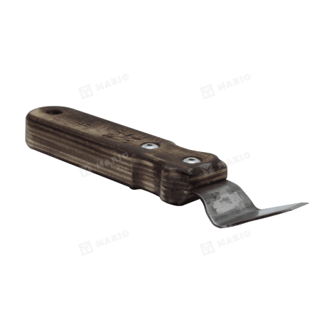 Перьевой шпатель — это инструмент, используемый для монтажа натяжного полотна в области обходных элементов, коммуникаций. Он имеет зауженную рабочую поверхность и острую форму, а также изогнутую под определённым углом лопатку для проникновения в труднодоступные места.