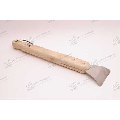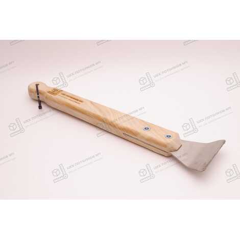 Длина ручки шпателя составляет 24 см, что обеспечивает удобный хват и контроль над инструментом во время работы. Ширина лопатки составляет 6.5 см, что позволяет быстро и эффективно обрабатывать большие участки профиля. Толщина металла лопатки составляет 2,5 мм, что придаёт ей дополнительную прочность и устойчивость к износу.