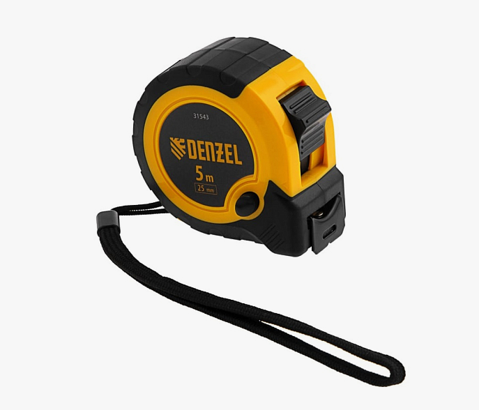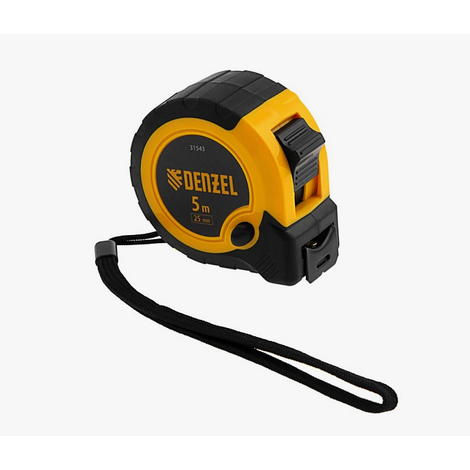 Рулетка DENZEL 5 м х 25 мм двухкомп.корпус, кнопка-пауза
