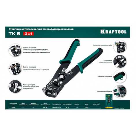 TK-6 стриппер автоматический многофункциональный, 0.2 - 6 мм2, KRAFTOOL (для зачистки проводов)