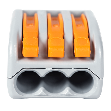 Клеммная колодка 3-х контактная с нажимным рычагом для медных одножильных и многожильных проводников сечением 0,08 – 4мм2. Рабочее напряжение 380 В, ток 32 А. Для проводников из алюминия данные клеммы заполняются токопроводящей пастой Alu-Plus.