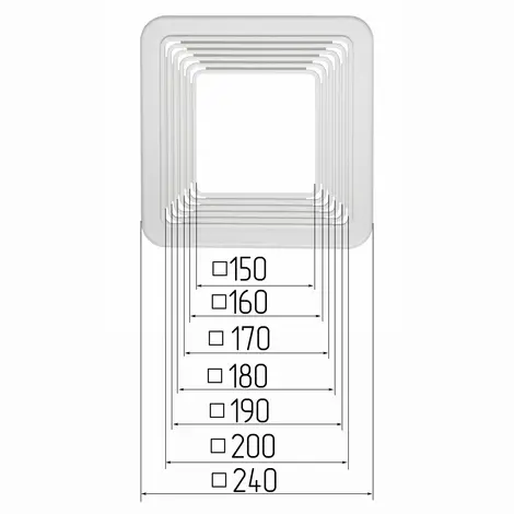 Предназначена для монтажа точечных светильников квадратного сечения, в первую очередь ориентирована на светодиодные ультратонкие светильники. Благодаря универсальности конструкции посадочный размер может варьироваться от 150 мм до 200 мм, шаг 10 мм. При подготовке платформы к установке необходимо выбрать нужный размер отверстия и с помощью ножа вырезать его по специальной канавке. Для удобства крепления перфоленты (подвесов) на платформе имеются специальные площадки с несквозными отверстиями. Наличие ребер жесткости и специального места для крепления перфоленты обеспечивает надежность конструкции и простоту при установке.