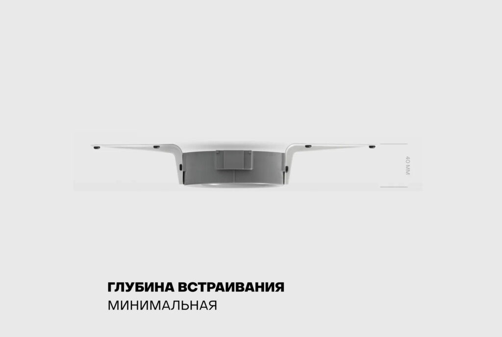 Монтаж занимает пару минут и не требует дополнительных закладных. Рекомендуем использовать для устройства лампы с цоколем GX53 мощностью до 12 Вт.