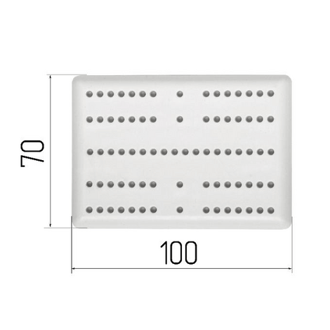 На поверхность площадки нанесены отверстия для саморезов, края площадки закруглены, имеет четыре точки крепления к потолку.
