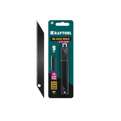 Лезвия для ножей Kraftool изготовлены из инструментальной легированной стали SK-2. В упаковке содержится 10 лезвий шириной 9 мм.