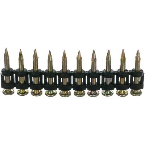 Изделие из прочной качественной стали. Используется для монтажа к бетону конструкций из дерева, пластика и других материалов. Гвоздь оснащен дюбелем, форма которого удобна для размещения крепежа в пазу и его прочной фиксации. Монтаж осуществляется с помощью газовых или пневматических пистолетов.