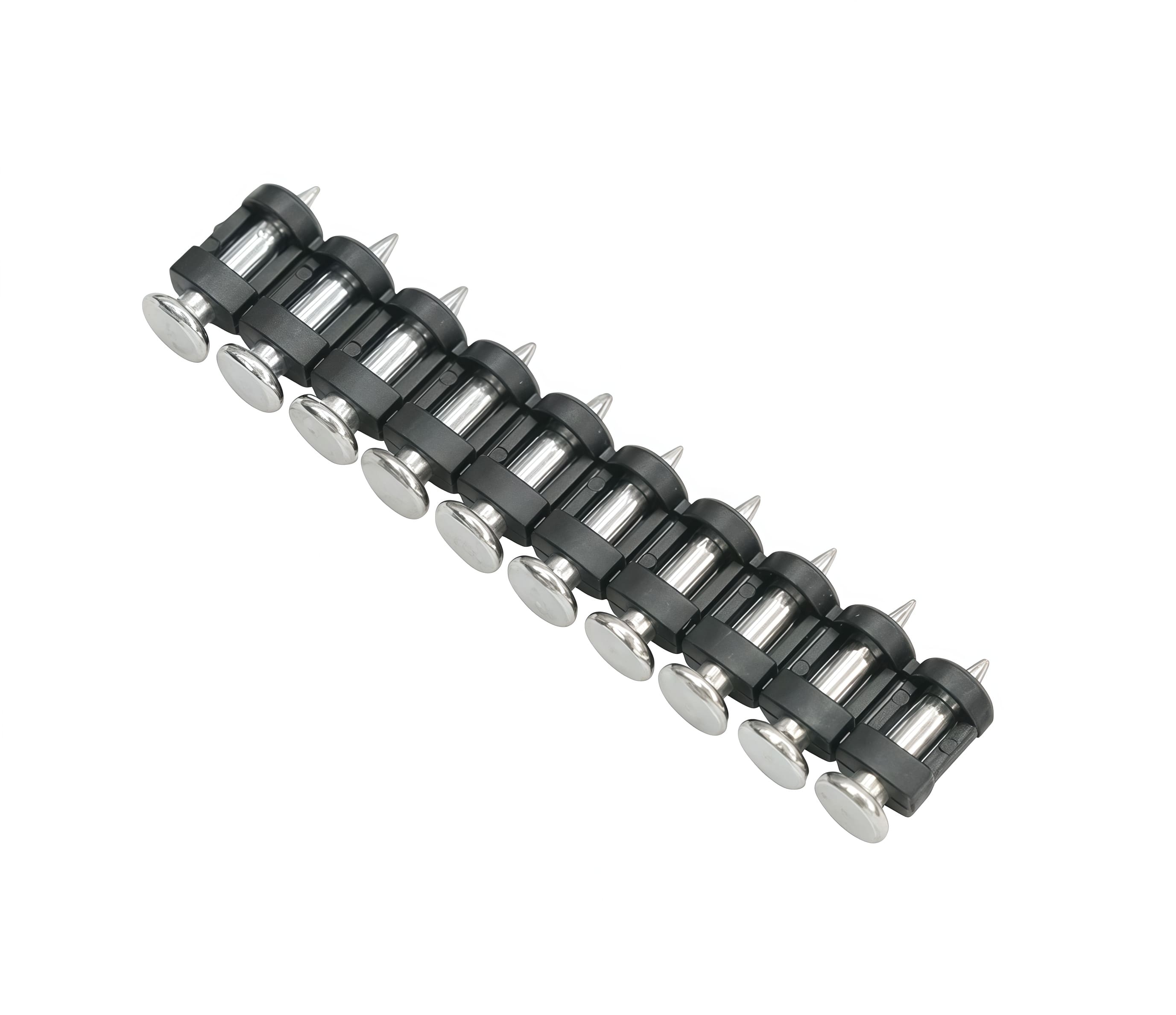 Кованые гвозди для монтажного пистолета 16х3 мм изготовлены из стали марки СТ-60, обработаны механической гальванизацией. Используются для суперпрочных монолитных конструкций из бетона M350 и металлических швеллеров. Гвозди выполнены в форме пули, с плавным утолщением материала от острия к шляпке гвоздя. Такая форма гвоздя достигается путем прокатки наконечника гвоздя в сдавливающих роликах. Это позволяет уплотнить металл в зоне, где располагается острие.