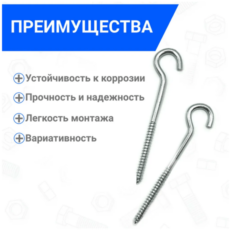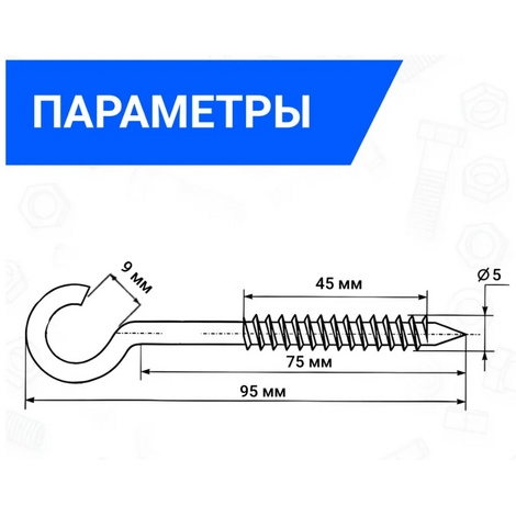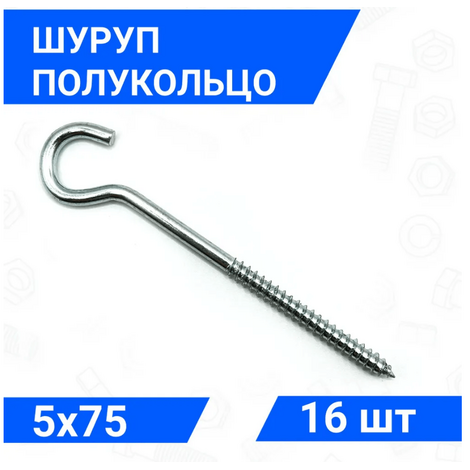 Крючок под люстру 5х75 — это металлический шуруп-крючок с неполной резьбой и острым наконечником на одном конце.