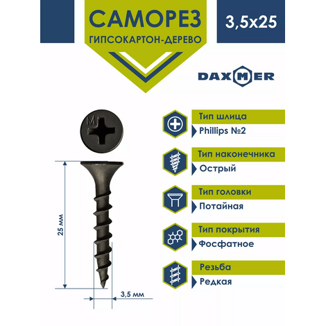 Саморез 3,5х25 дерево (500шт) Daxmer