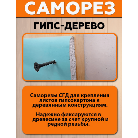 Саморез «гипс-дерево» 3,5×35 мм в количестве 1000 штук — это крепёжное изделие, оно предназначено для соединения деревянных элементов и гипсокартона.
