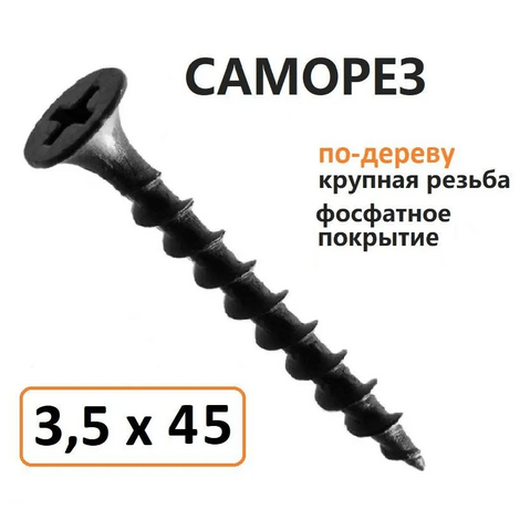 Саморез «гипсокартон-дерево» размером 3,5 × 45 в количестве 5500 штук — это крепёжный элемент с частой резьбой, предназначенный для соединения деревянных элементов с гипсокартоном.