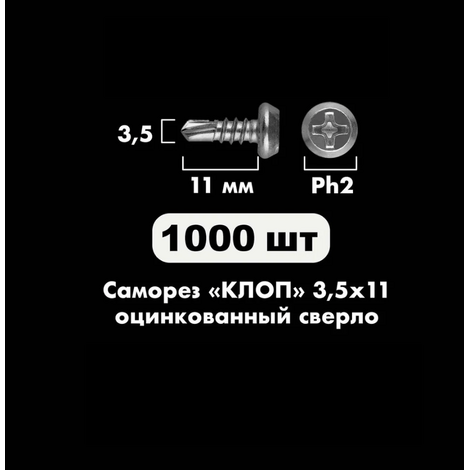 Саморез КЛОП 3,5*11 цинк сверло 1000 шт