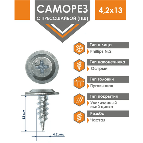 Саморез с прессшайбой острый 4,2х13 цинк 16000 шт