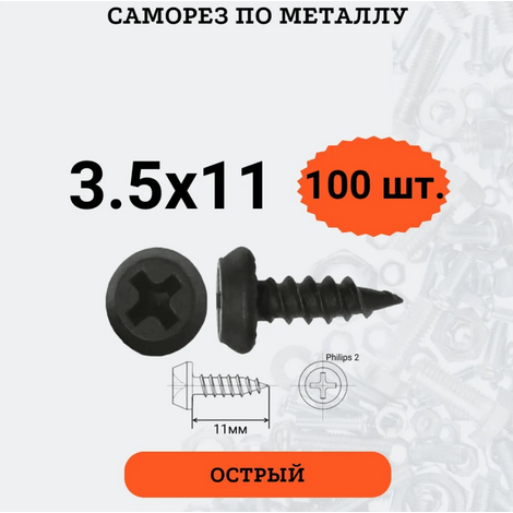 Саморезы 3,5*11 (100шт) острые