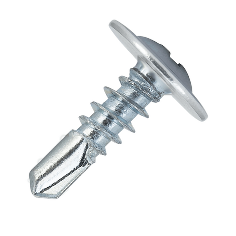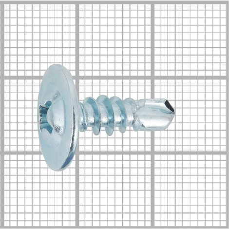Саморез с прессшайбой и сверловидным наконечником, шляпка самореза выполнена в виде полукруглой головки на которую напрессована плоская шайба.