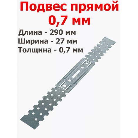 Подвес прямой 0,7 мм — это оцинкованный стальной элемент, предназначенный для крепления потолочных профилей к несущим конструкциям при облицовке стен и устройстве подвесных потолков. Он также используется для уменьшения расстояния между несущим и подвесным потолком.