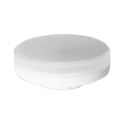 Светодиодная лампочка в форме таблетки с цоколем GX53 обладает мощностью в 12 Вт. Цветовая температура — 4200К, т.е. дневной белый свет. Изделие рассчитано на использование в сети с переменным напряжением в 175-265В.
