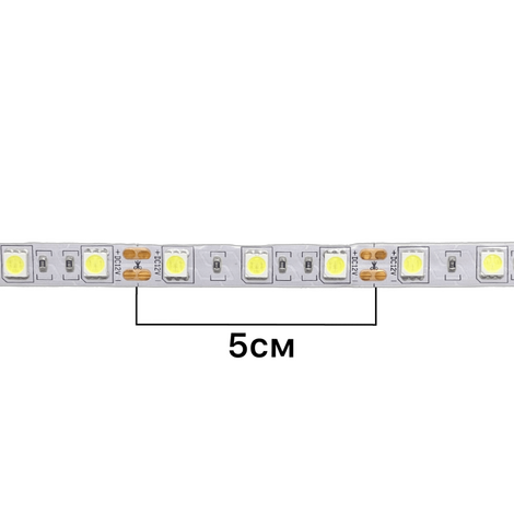 Потребляемая мощность светодиодной ленты с диодами smd 5050 составляет 14,4 Вт на метр, она представляет собой 1 метр белой основы толщиной 10 мм, на которой закреплены светодиоды. Её размеры и материал не ограничивают возможности установки в труднодоступных местах, тем самым позволяя обеспечить свет там, где другие осветительные приборы невозможно монтировать.