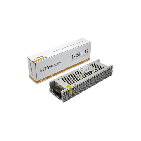 Блок питания SWG компактный (узкий), 200 W, 12V T-20-12. Габариты:225×67×40 мм. Общая мощность 200Вт. Напряжение: 12V. Максимальный ток: 16.66А. Степень защиты IP: 20.