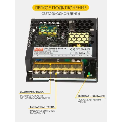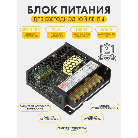 Блок питания для светодиодной ленты LUXDriver, 24В, 100Вт, 4.2А, IP20.