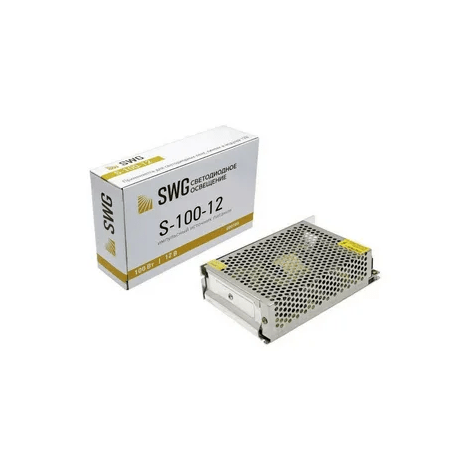 Блок питания SWG мощностью 100 Вт и напряжением 12 В предназначен для светодиодных лент и другого оборудования, работающего от постоянного напряжения 12 В. Он имеет сверхтонкий дизайн и компактные размеры, что позволяет легко установить его в различных местах. Его артикул — S-100-12.