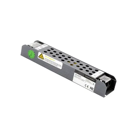 Этот компактный блок питания с функцией TRIAC-диммирования имеет степень защиты IP20 и мощность 60 Вт. Он выдаёт стабилизированное напряжение 24 В. YA-60-24.