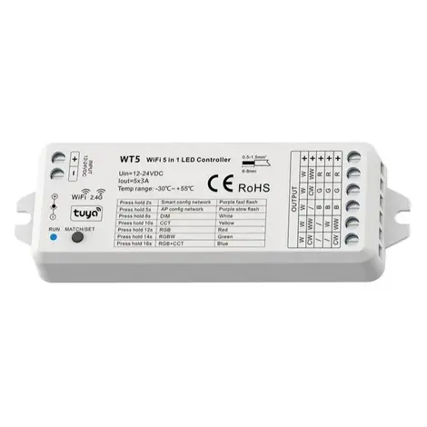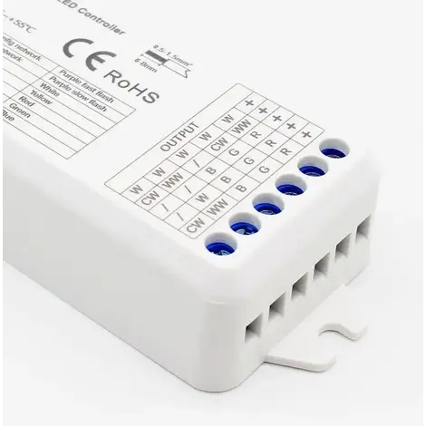 Контроллер «Умный дом» ZigBee LED Controller TUYA CW MIX — это многофункциональный 5-канальный контроллер, предназначенный для светодиодных лент и модулей. Контроллер поддерживает режимы RGB, RGBW, RGB+CCT и MIX. Питание осуществляется от сети 12–24 В, максимальный ток на канал составляет 3 А, а общая мощность — 180–360 Вт.