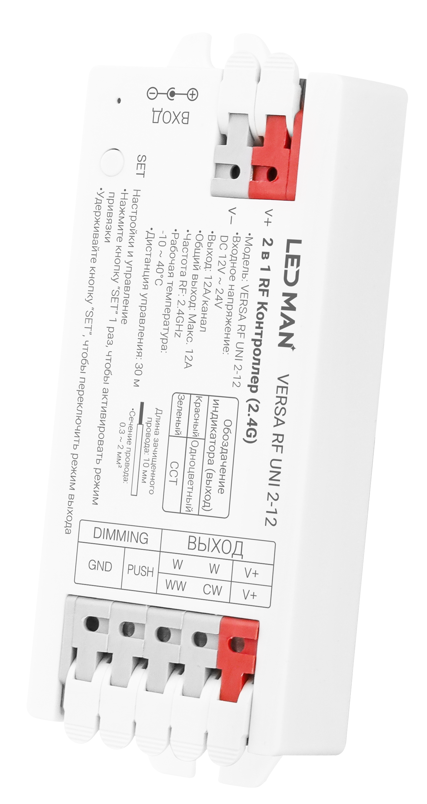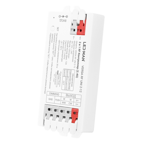 LED MAN, VERSA RF UNI 2-12, Контроллер 2 в 1, Одноцветный / CCT, 12-24V, 12A, 10A(CH) 2.4Гц