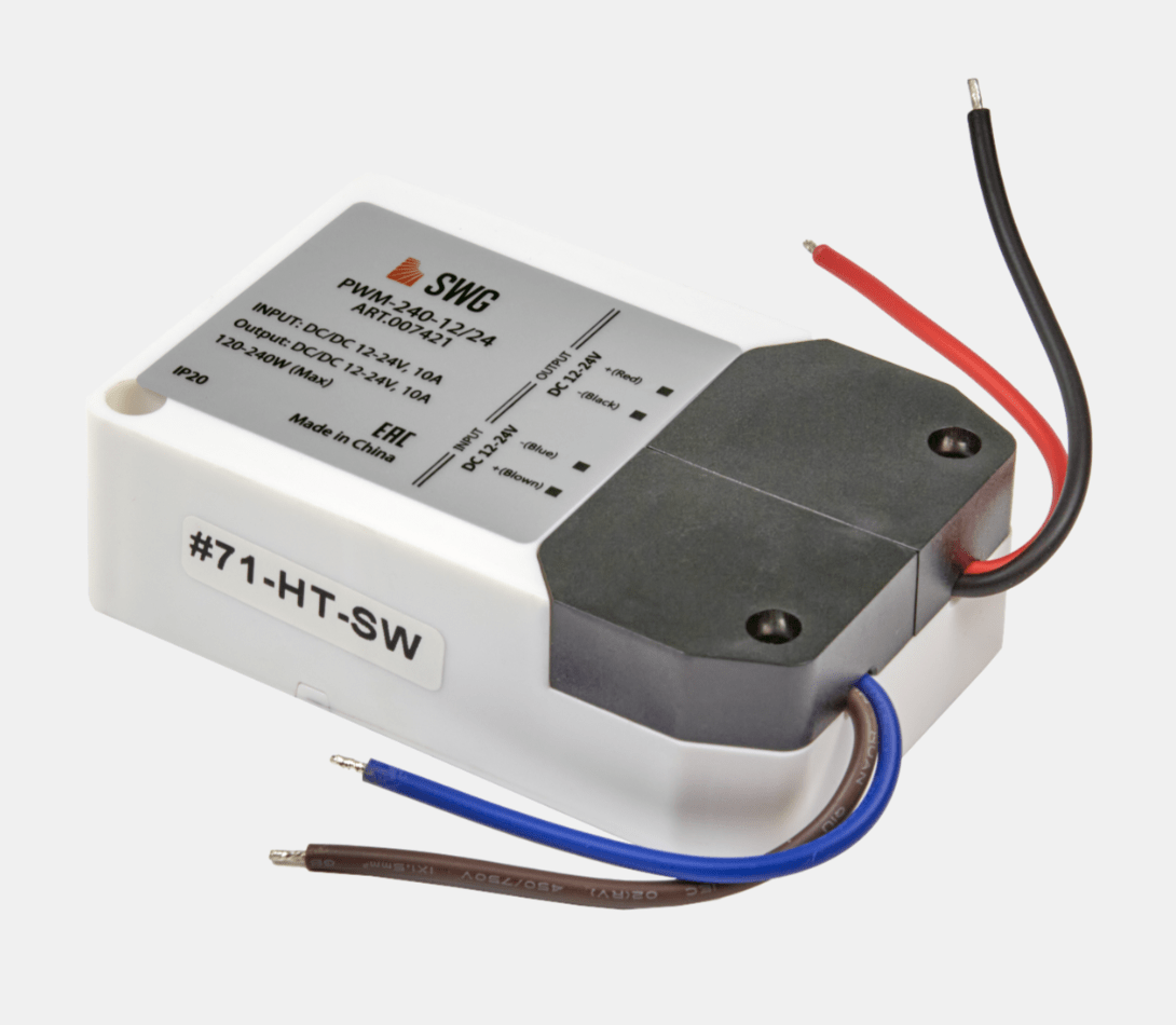 Эффективен с большинством сочетаний диммеров/контроллеров и блоков питания для светодиодной ленты.