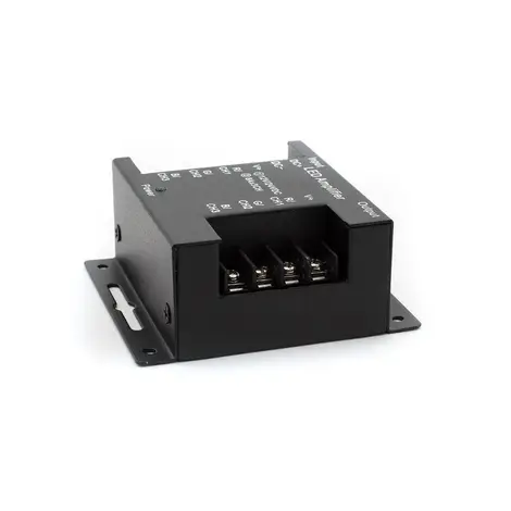 Усилитель одноканальный для светодиодной ленты AMP-DIM-30F-BL предназначен для работы с одноканальными ШИМ-диммерами и позволяет управлять светодиодной лентой большой мощности при помощи маломощного диммера.