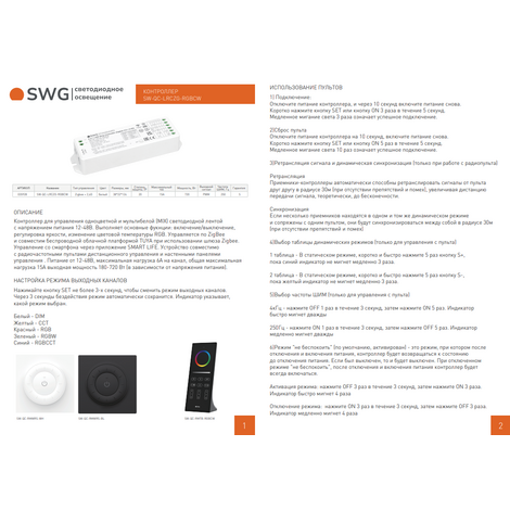 Контроллер для свет. ленты Quick control 5 в 1 (одноцв., CCT, RGB/RGBW, RGB+CCT), 15A 12/48В Zigbee