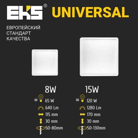 Встраиваемый светодиодный светильник EKS UNIVERSAL для основного, декоративного и акцентного интерьерного освещения. Универсальная LED панель подходит для натяжного потолка и любых подвесных конструкций. Светодиодная панель имеет равномерный яркий свет без пульсаций и мерцания. Не утомляет и не раздражает глаза. 8 Вт, 640ЛМ, 4200К.