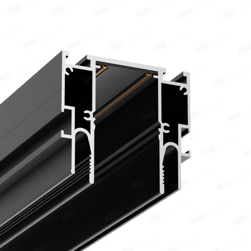 Современная трековая система освещения с использованием специального монолитного алюминиевого профиля, в который установлены токопроводящие дорожки, через которые подается электропитание на светильники. Технология установки трековых светодиодных светильников позволяет создавать различные сценарии освещения, дает возможность зонировать помещение при помощи освещения. В этой системе освещения применяются линейные светильники направленного и рассеянного света, классические поворотные споты, а также подвесные светильники, которые работают от напряжения 220V и оснащенные магнитными или механическими фиксаторами. Конструкция профиля предусматривает фиксацию любого тканевого или ПВХ полотна при помощи современной системы крепления Clamp, система монтируется и располагается на одном уровне с натяжным потолком.